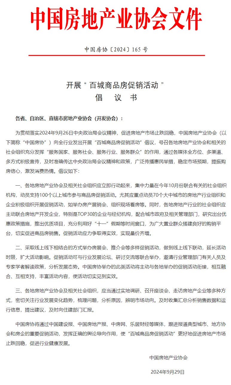 中国房协:倡议开展百城商品房促销活动优配速至中国房协:倡议开展百城商品房促销活动