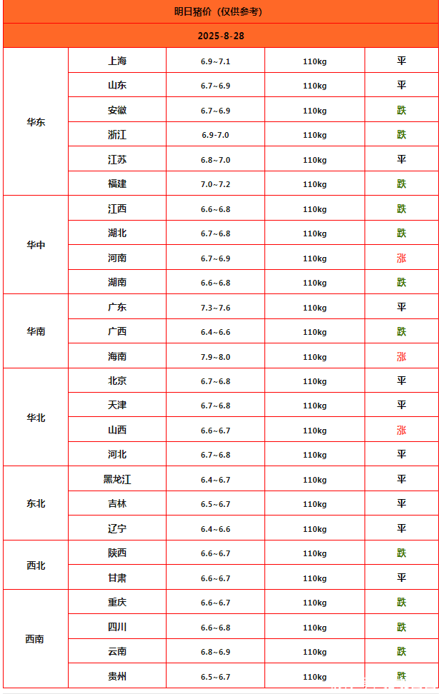 据数据显示,受屠企调价收猪,预计,8月28日,外三元标猪出栏报价在13.65元/公斤,后市关注集团猪企出栏节奏以及二次育肥入场的变化!