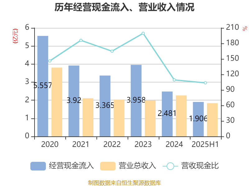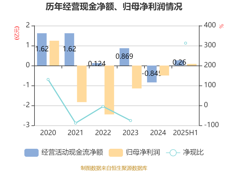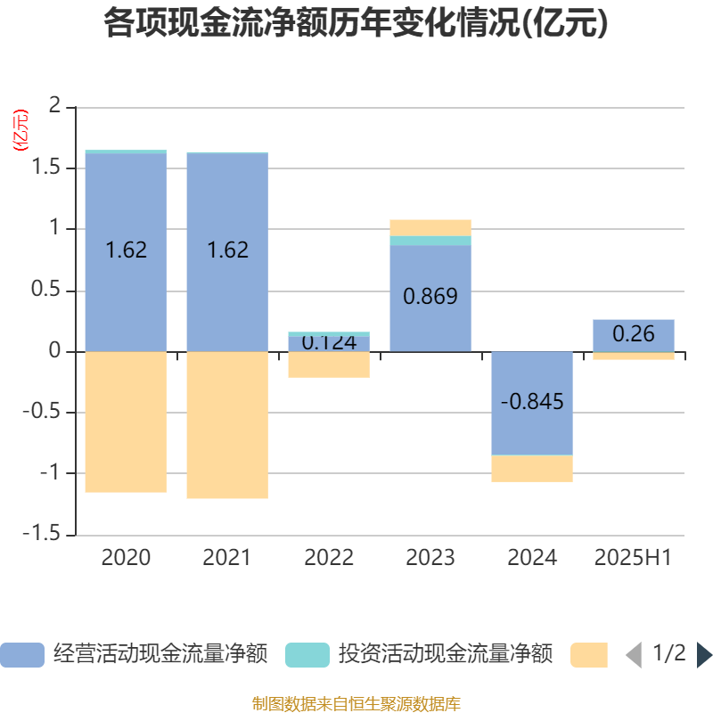 2025年上半年51我要配资,公司经营活动现金流净额为2599.84万元,同比增长124.84%;筹资活动现金流净额-596.82万元,同比增加9049.96万元;投资活动现金流净额-78.84万元,上年同期为4.85万元。
