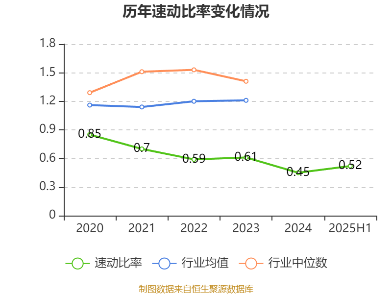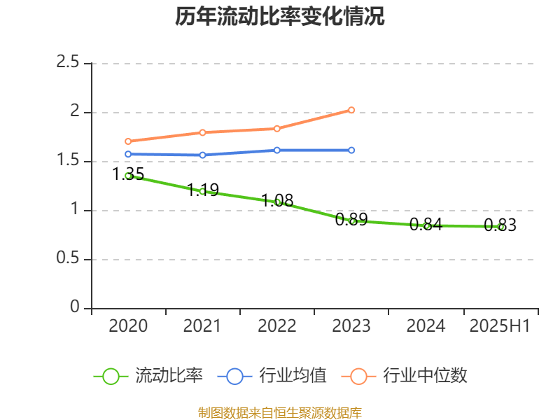 2025年上半年,公司流动比率为0.83,速动比率为0.52。