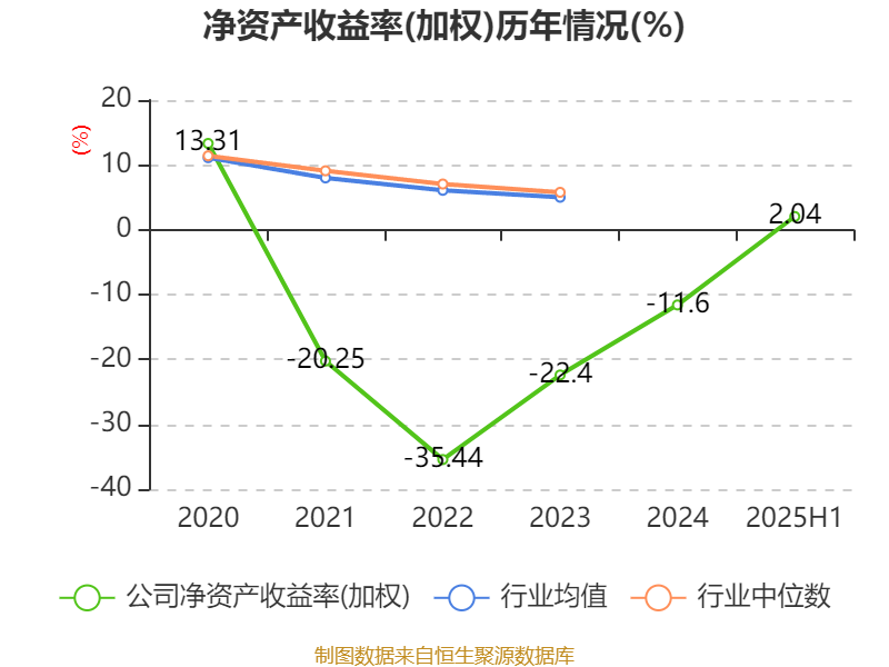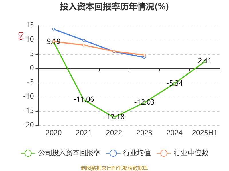 盈利能力方面, 2025年上半年公司加权平均净资产收益率为2.04%,同比上升10.12个百分点。公司2025年上半年投入资本回报率为2.41%,较上年同期上升6.55个百分点。