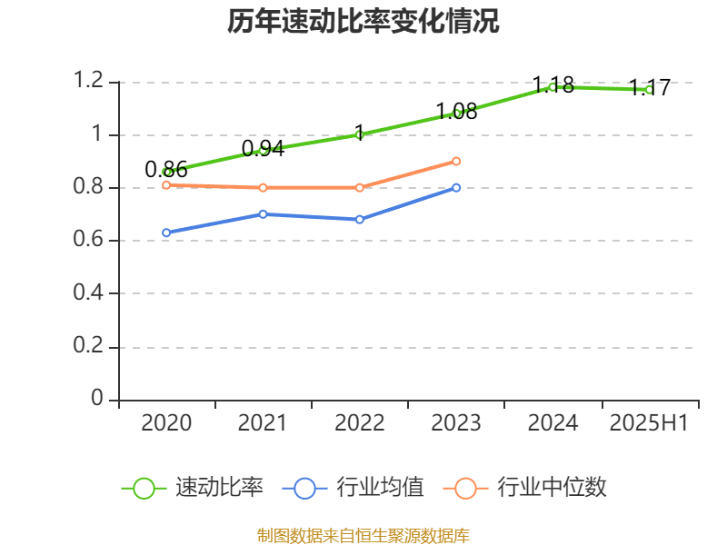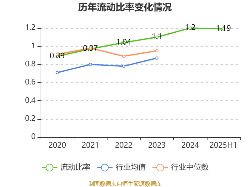 2025年上半年,公司流动比率为1.19,速动比率为1.17。