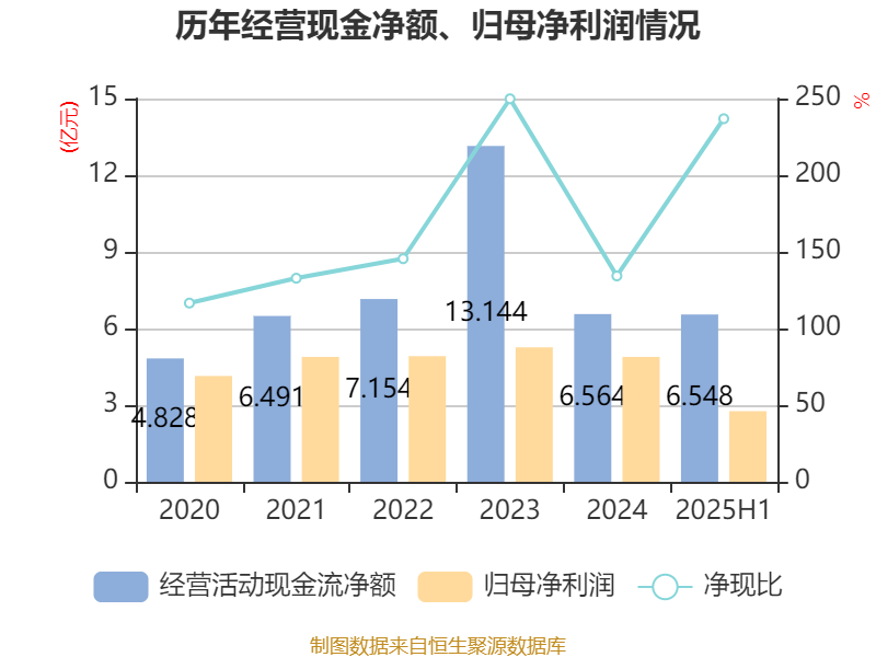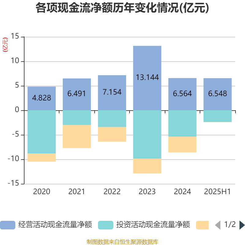 2025年上半年牛弘配资,公司经营活动现金流净额为6.55亿元,同比增长65.51%;筹资活动现金流净额-514.21万元,同比增加5839.62万元;投资活动现金流净额-2.41亿元,上年同期为-1.43亿元。