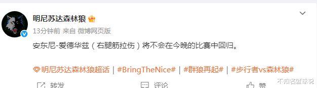 伤病成为如今NBA的严峻问题之一,在爱德华兹本场伤退之前,他此役仅登场3分08秒,进攻端贡献5投2中,其中外线三分3中1,仅得到5分1篮板。