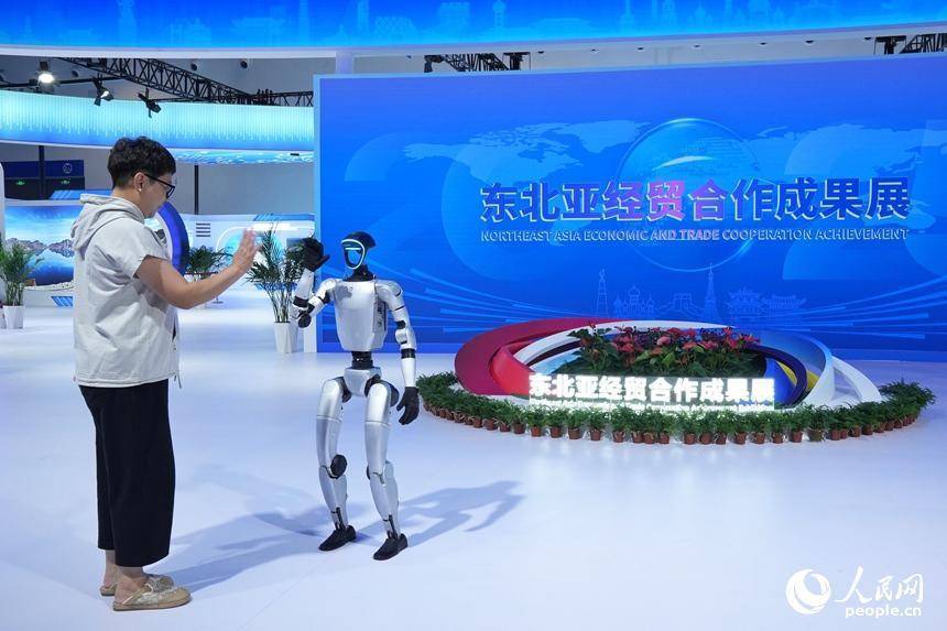 8月27日,第十五届中国—东北亚博览会上,观众与机器人互动。人民网记者 李洋摄